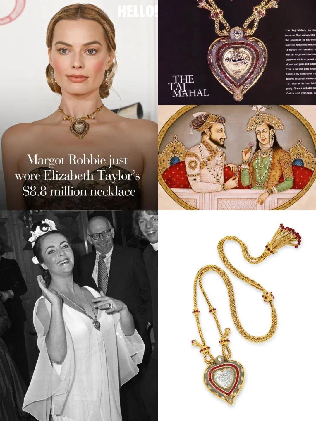 这身造型的另一个话题点是,Margot脖子上佩戴的那条伊丽莎白·泰勒珍藏的卡地亚泰姬陵钻石传奇颈链,价值约5000万人民币,这条项链是理查德·伯顿送给泰勒的40岁生日礼物,象征永恒之爱,与影片虐恋主题呼应。
